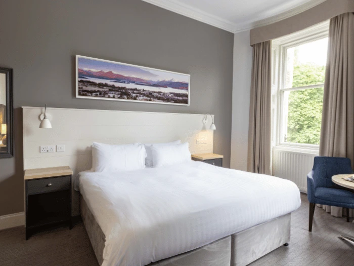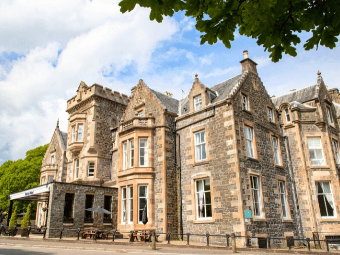 Today, the hotel offers a warm welcome and outstanding hospitality, housed in a 200-year-old building with a Scottish baronial style. The hotel boasts fine features, both inside and out. It’s surrounded by breathtaking scenery, looking out over Loch Lomond and Ben Lomond.